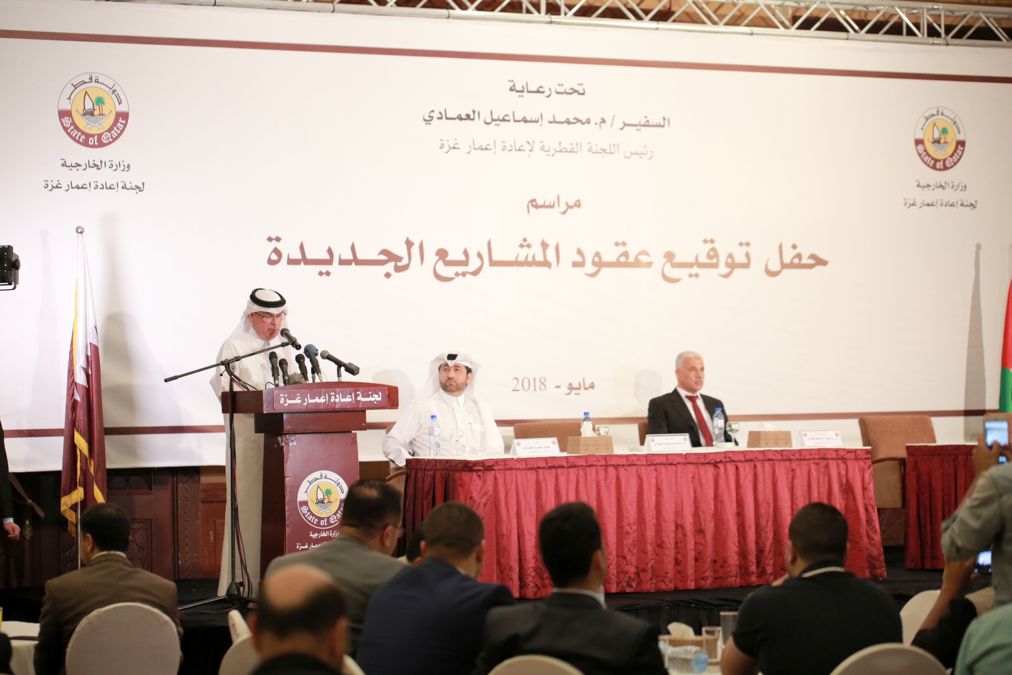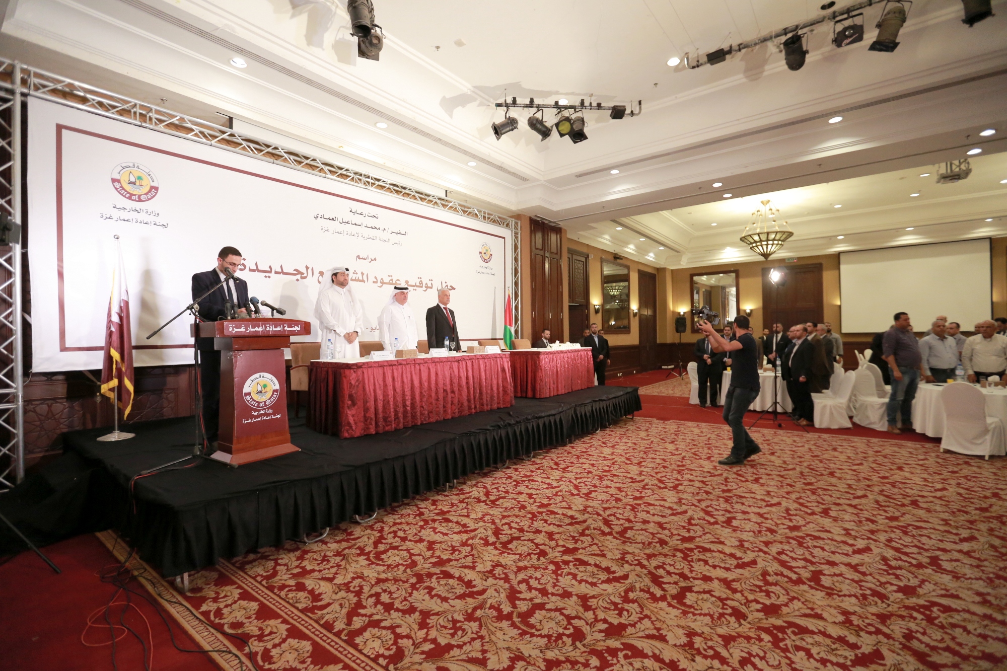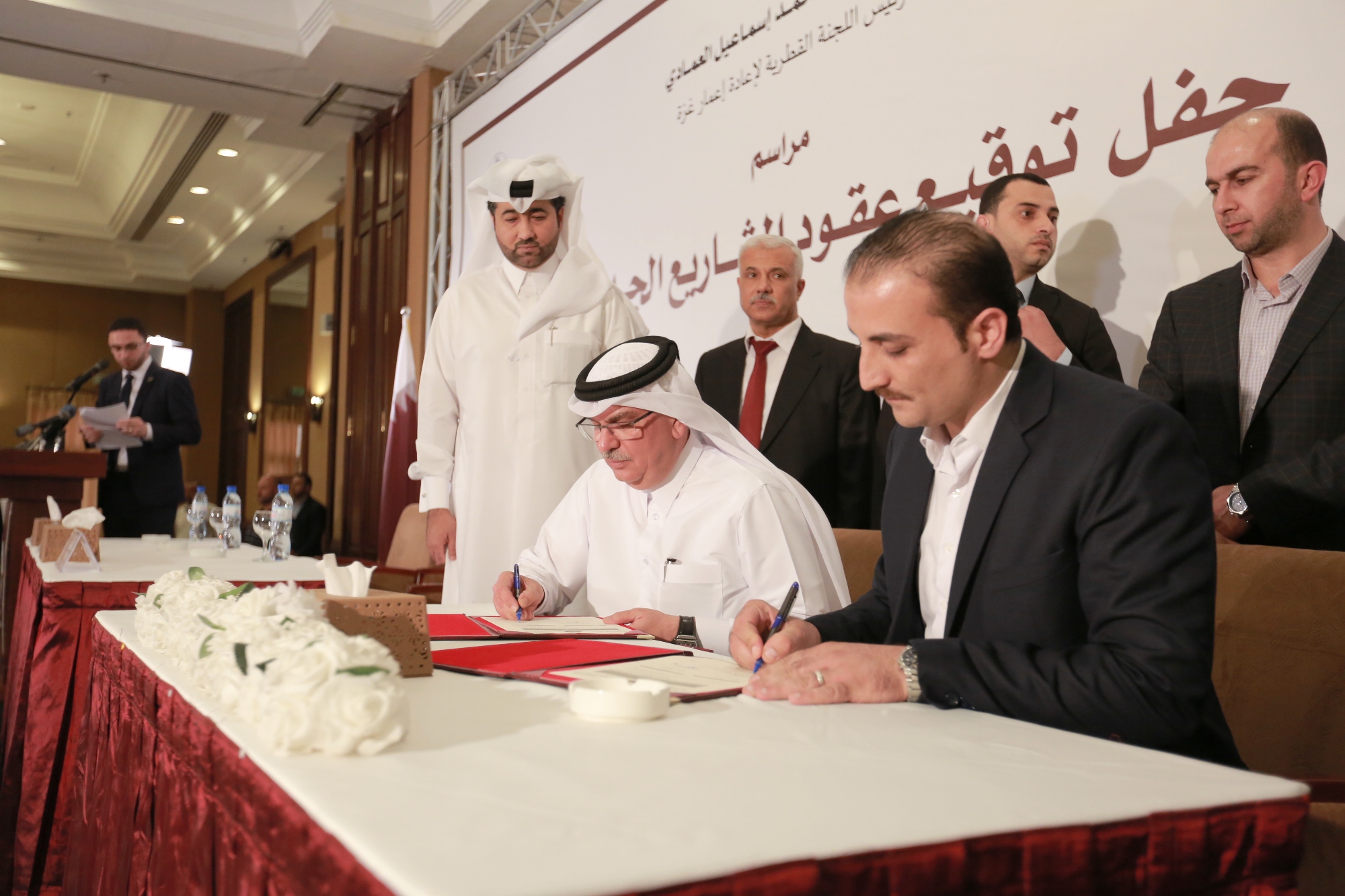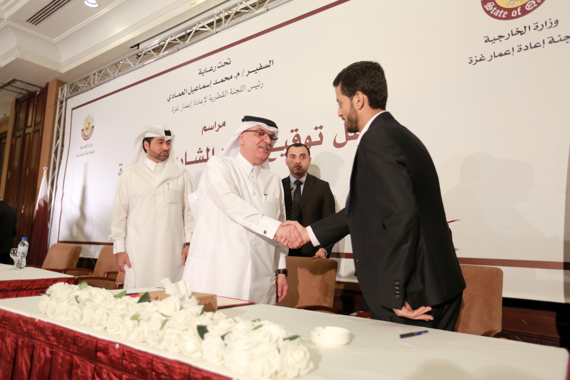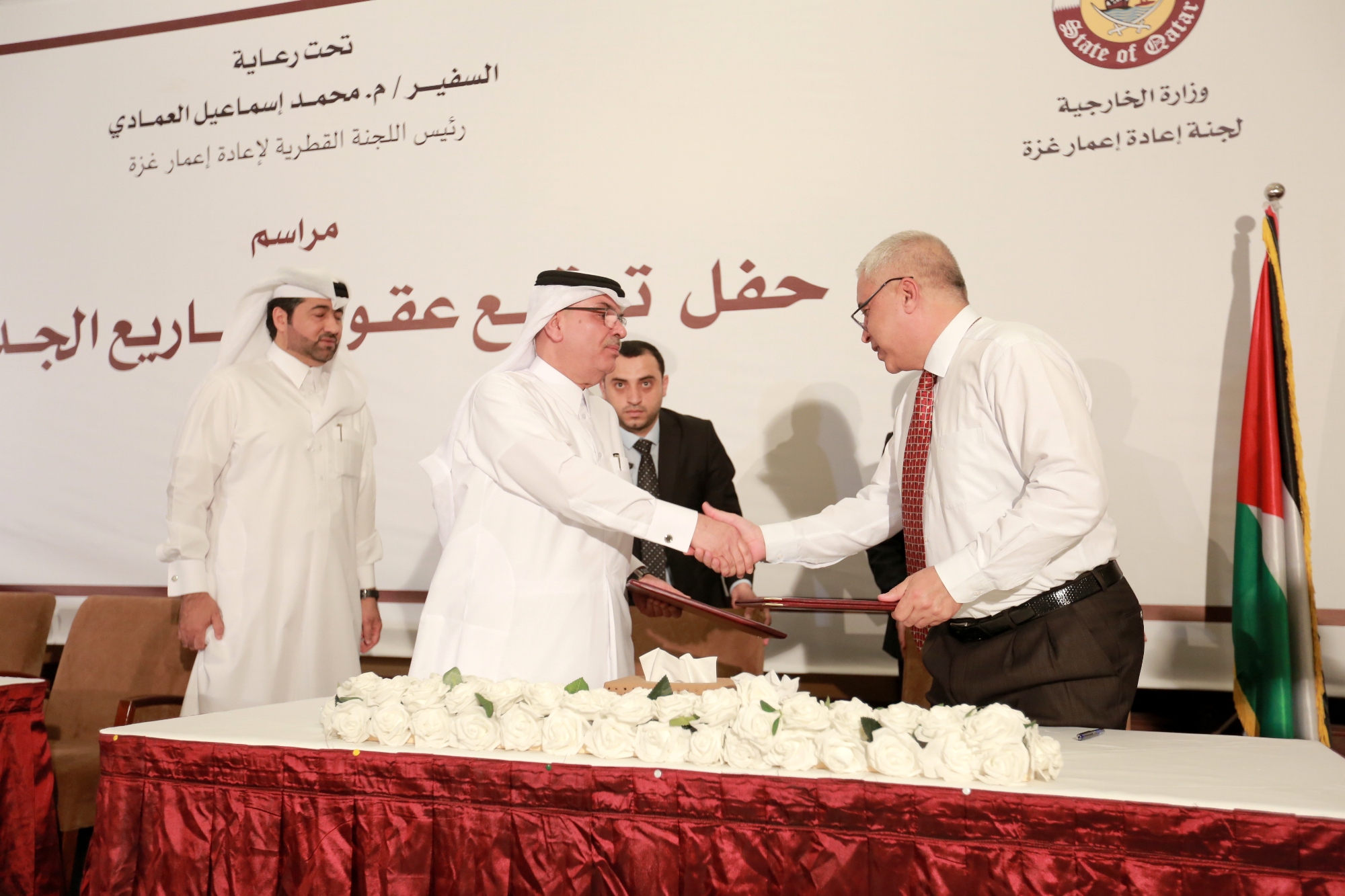 نظمت اللجنة القطرية لإعادة إعمار غزة حفلا على شرف سعادة السفير محمد العمادي-رئيس اللجنة- لتوقيع عقود عدد من المشاريع الجديدة التي ستنفذها اللجنة في قطاع غزة.