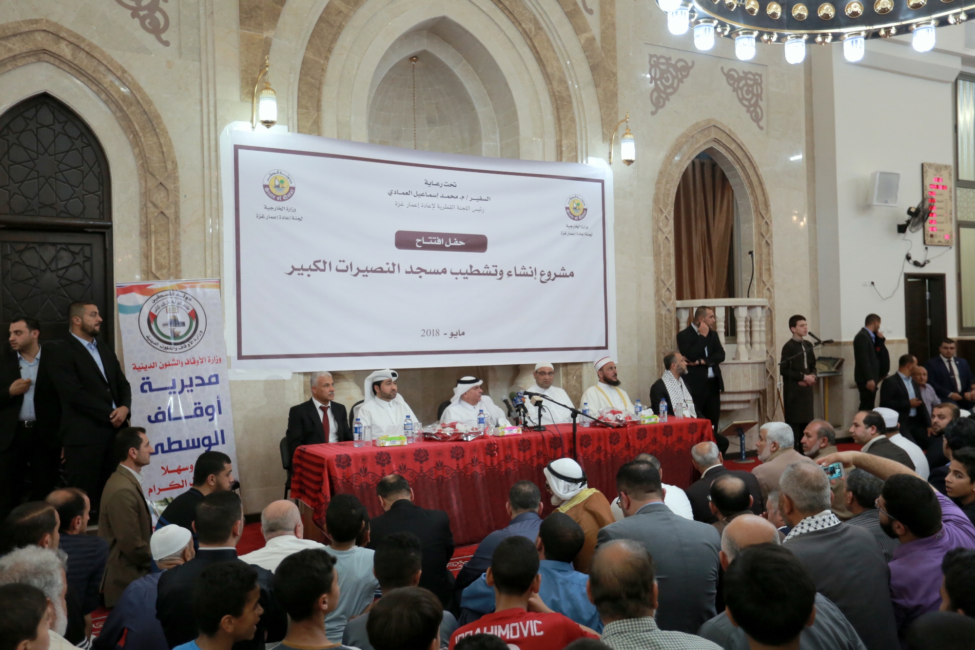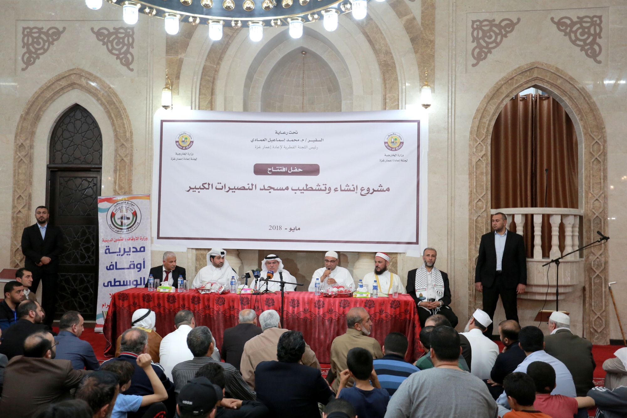 افتتح سعادة السفير محمد العمادي، رئيس اللجنة القطرية لإعادة إعمار غزة، مشروع إنشاء وتشطيب مسجد النصيرات الكبير، برفقة نائبه الأستاذ خالد الحردان، ومستشاره د.م. يوسف الغريز، وسط قطاع غزة مساء الثلاثاء.