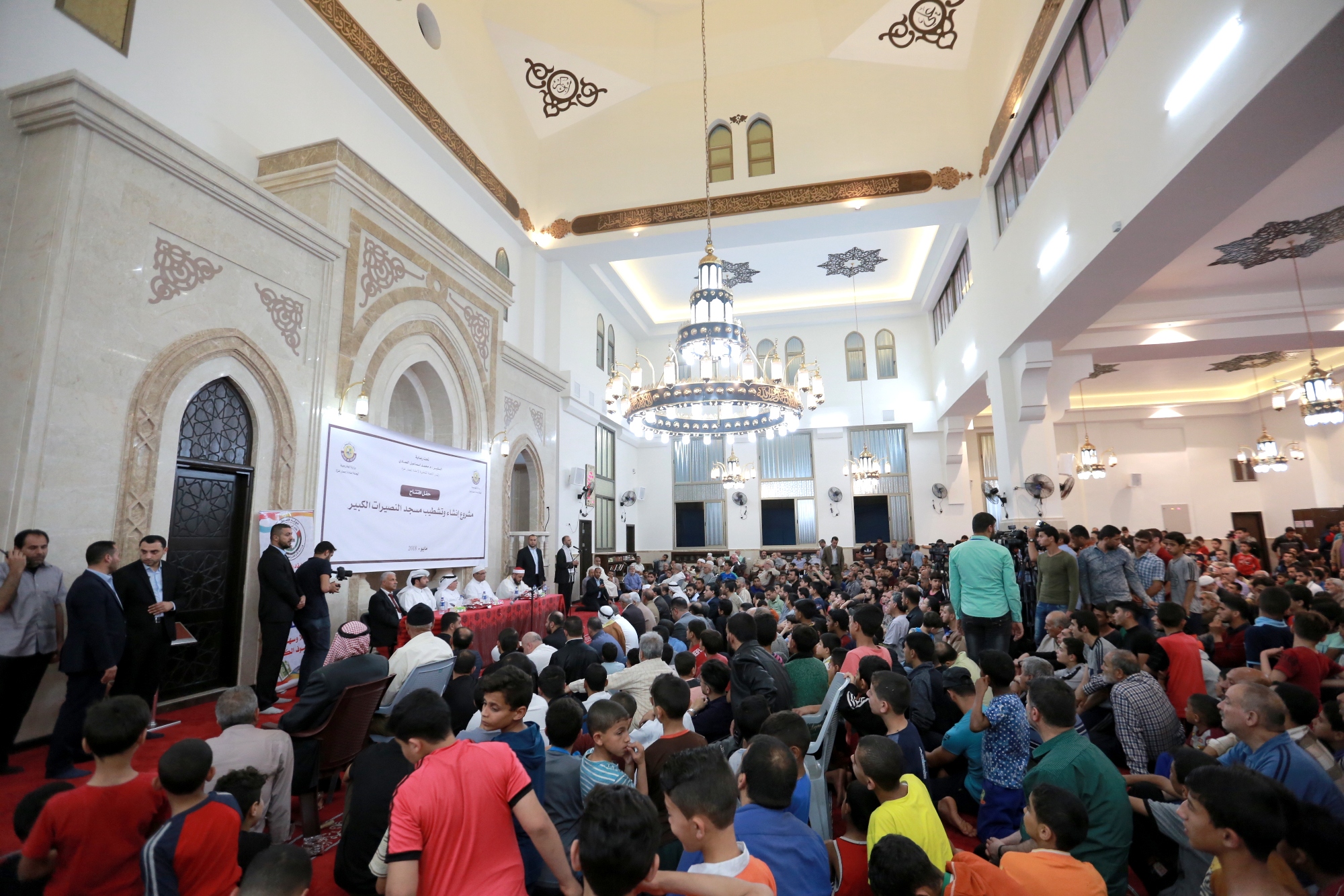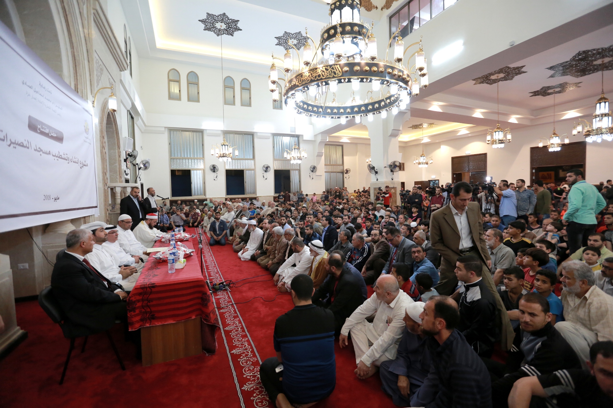 ونُظّم حفل الافتتاح على شرف سعادة السفير محمد العمادي في المسجد الذي انتهت مؤخرا أعمال إعادة إنشاءه وتشطيبه، ضمن مشاريع منحة سمو الأمير الوالد الشيخ حمد بن خليفة آل ثاني لإعادة إعمار غزة.
