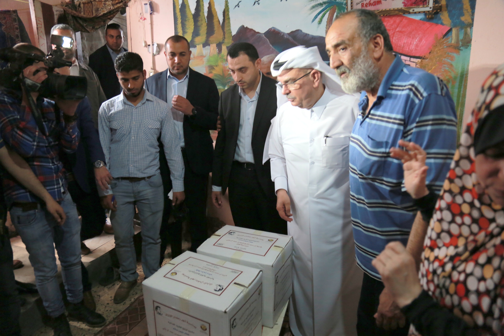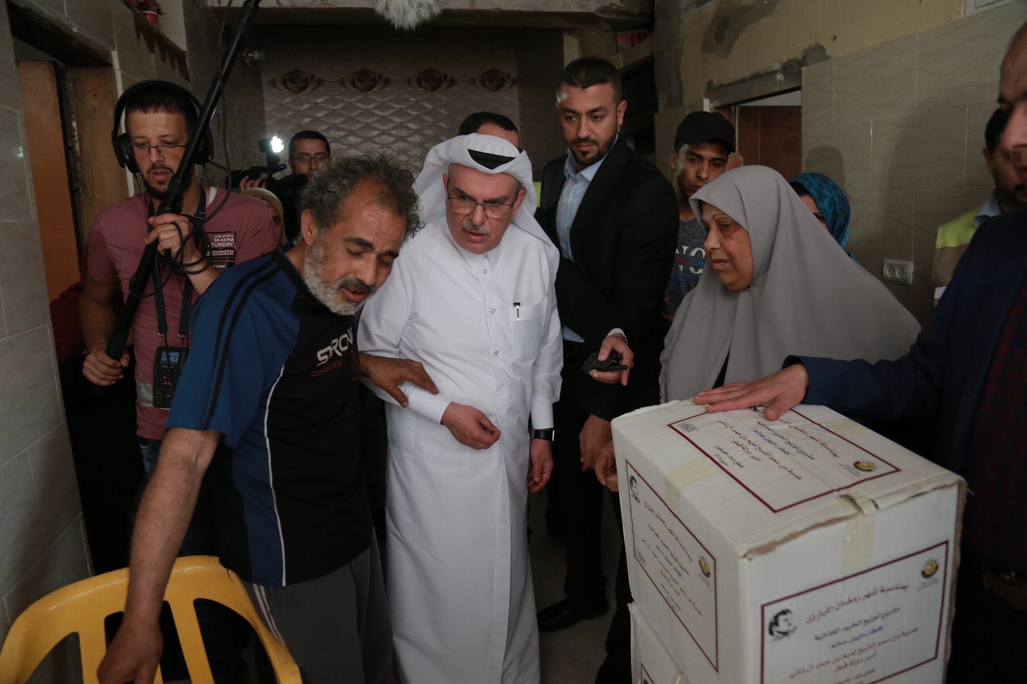 وسلّم السفير العمادي عينة من الطرود الغذائية الخاصة بالحملة على مجموعة من الأسر الفقيرة في القطاع خلال جولته على منازلهم، تفقد خلالها أحوالهم وأكد على وقوف دولة قطر الدائم بجوار سكان غزة ودعمهم الدائم لحقهم في العيش الكريم.
