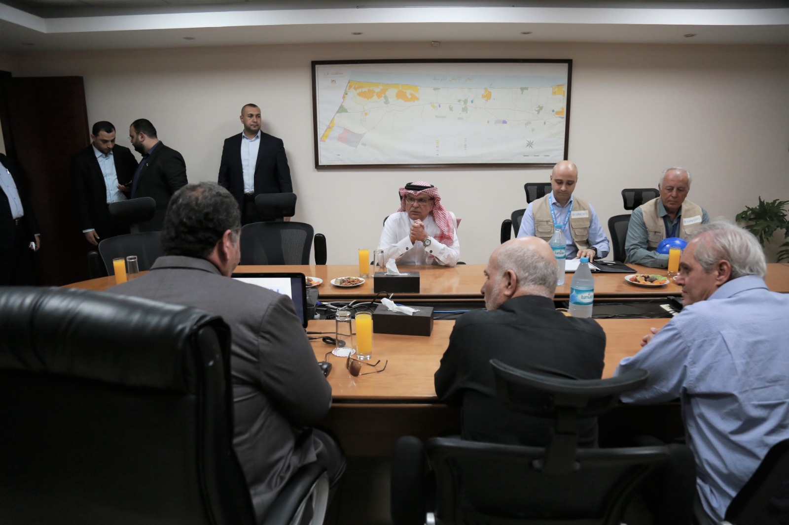 واجتمع السفير العمادي مع ممثلي منظمة الأمم المتحدة (UNOPS) ومدير عام المحطة السيد رفيق مليحة، قبل أن يُجري جولة في محطة التوليد الوحيدة في القطاع، اطّلع خلالها على آليات عمل المحطة وما تعانيه من إشكاليات.