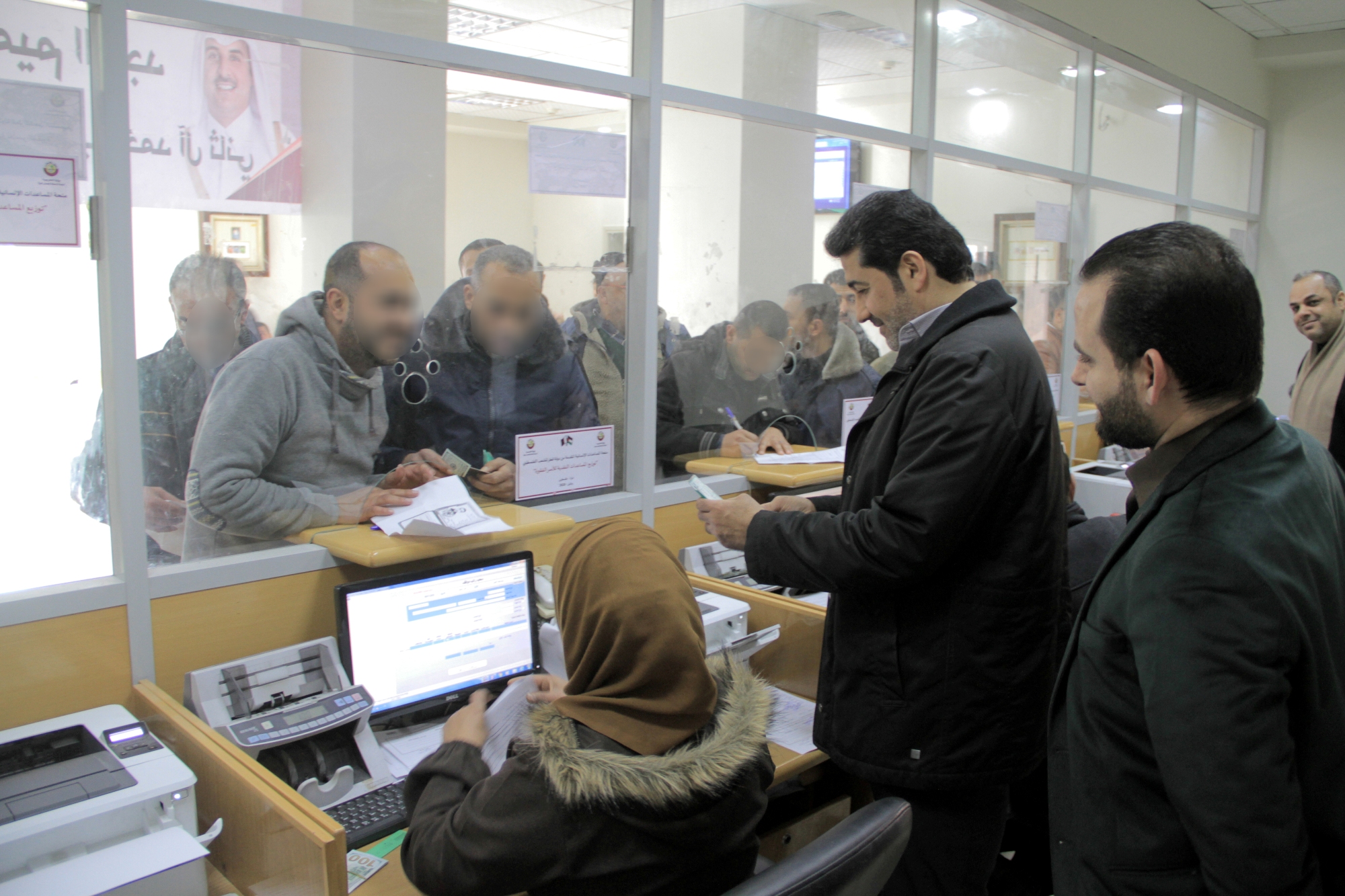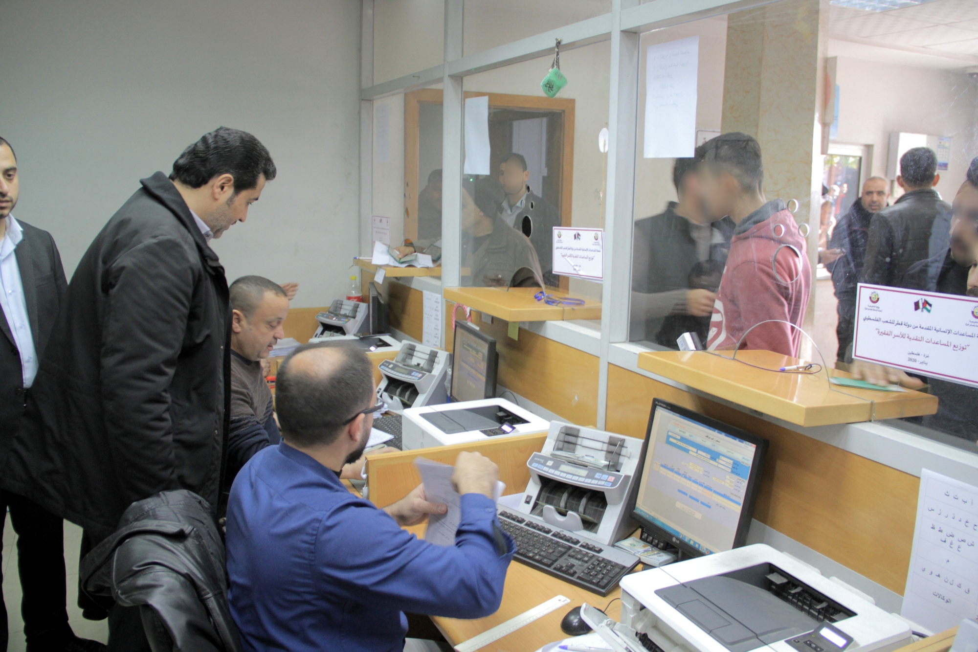 وتفقد الحردان سير عملية صرف منحة المساعدات النقدية لـ (70 ألف) أسرة بغزة، تم اختيارها وفق المعايير والشروط المتفق عليها بالتعاون مع وزارة التنمية الاجتماعية بغزة.