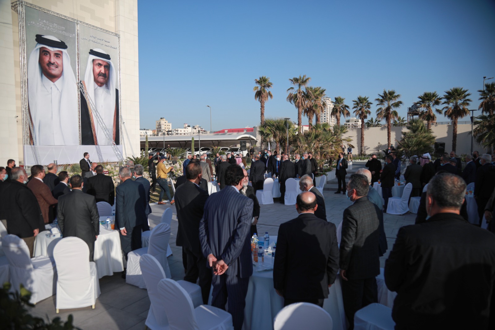 وخلال كلمته، وجّه السفير العمادي الشكر لفخامة الرئيس الفلسطيني محمود عباس، لتخصيصه قطعة أرض بمساحة 3 دونمات في محافظة رام الله، من أجل إقامة المقر الدائم للسفارة القطرية، مشيرا إلى أنه تجري الآن مرحلة إعداد التصاميم الهندسية للمشروع.