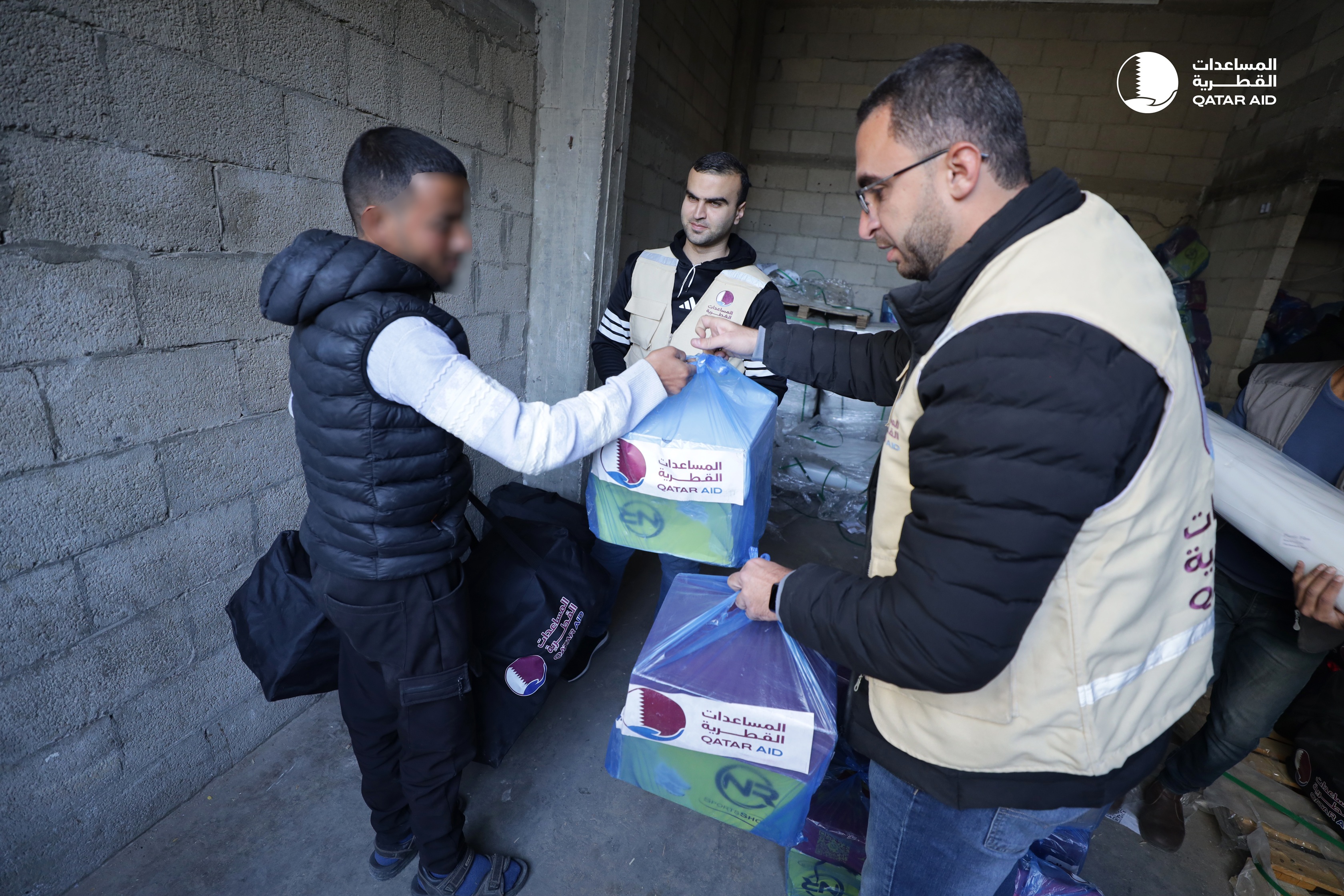 تزامناً مع دخول شهر رمضان المساعدات القطرية توزّع حقائب الملابس والمستلزمات الشتوية لآلاف الأسر في غزة