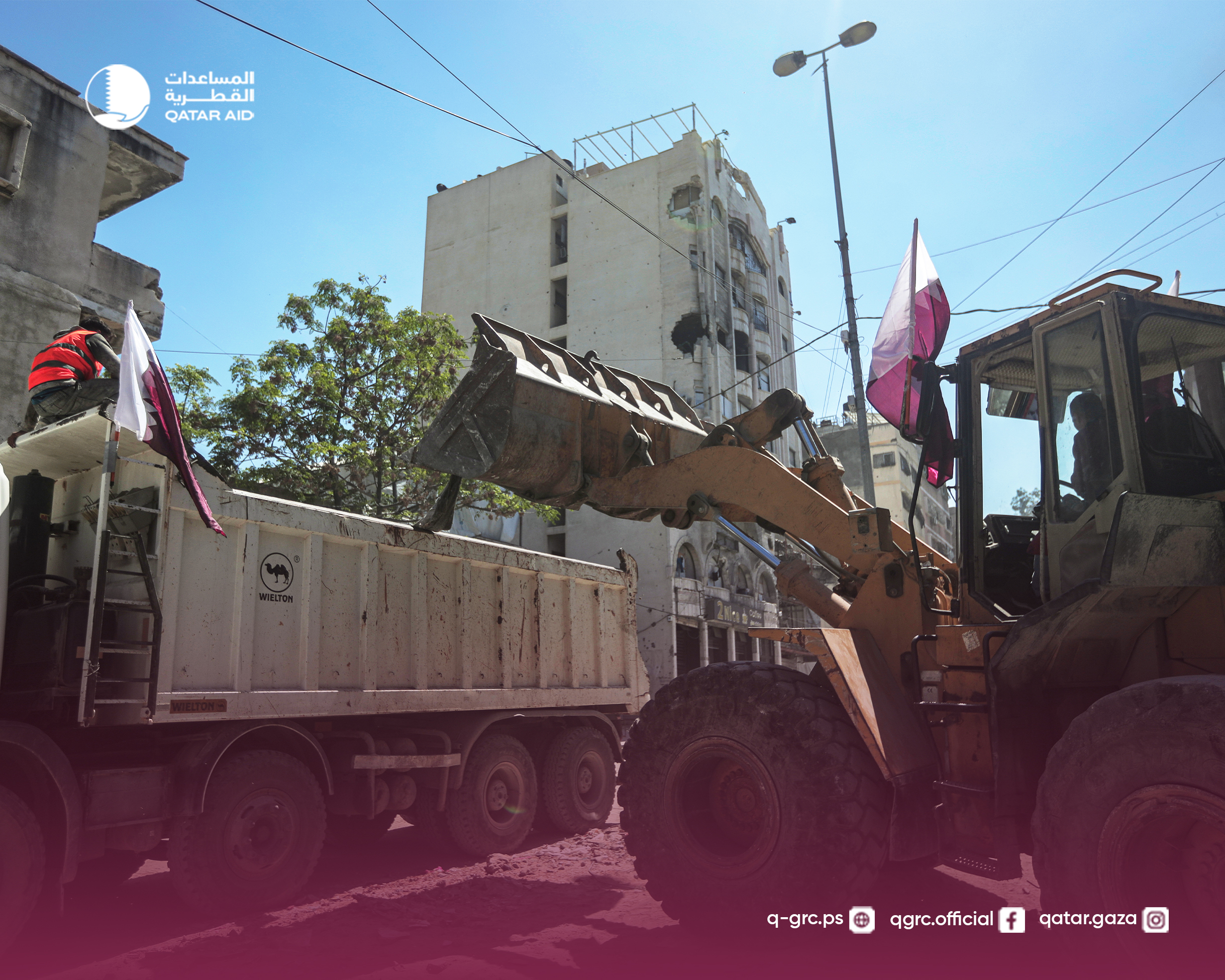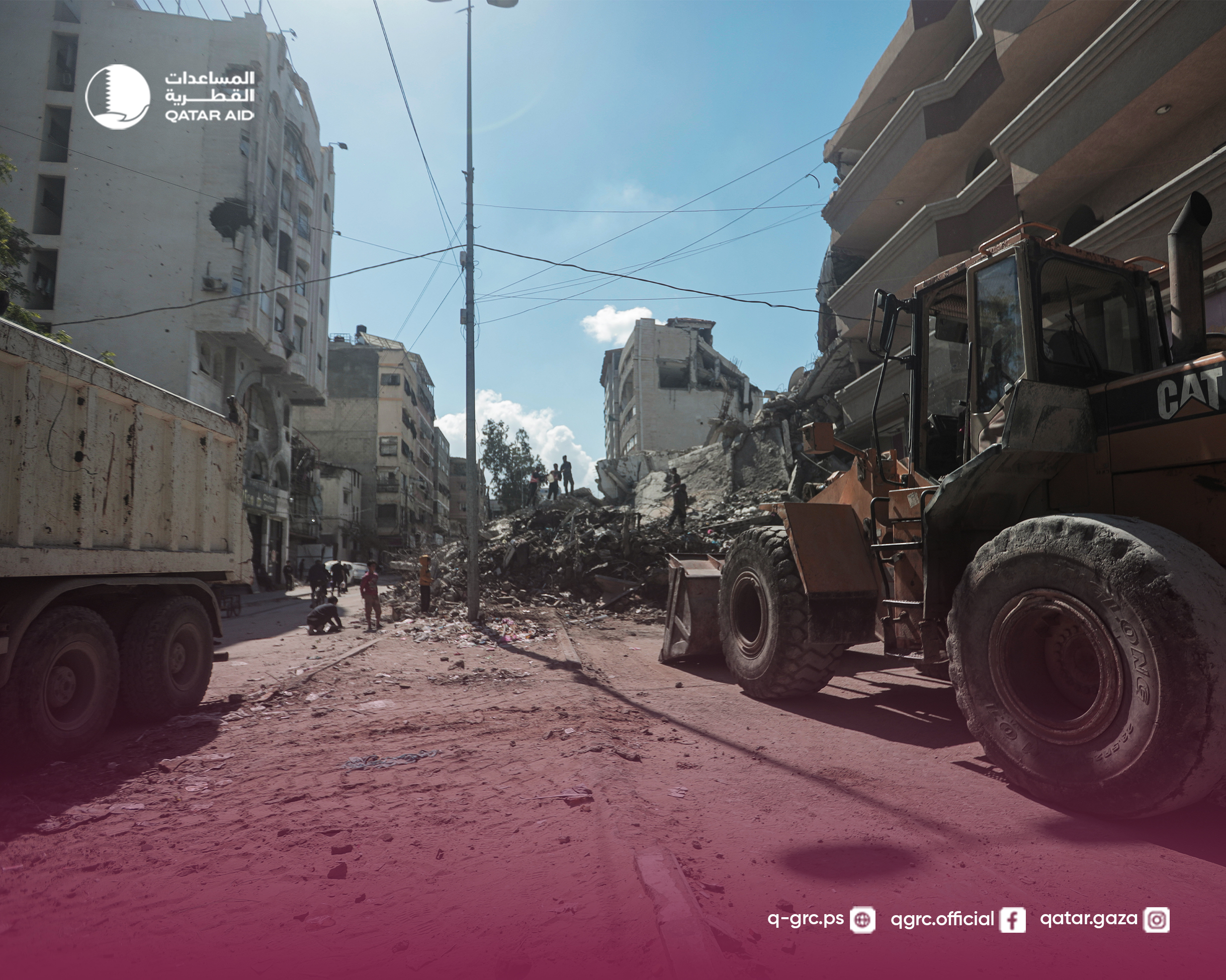 اللجنة القطرية تنفذ أعمال إزالة الكتل الخطرة والركام وفتح شارع الشهداء وسط مدينة غزة
