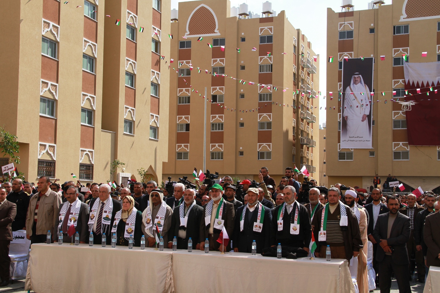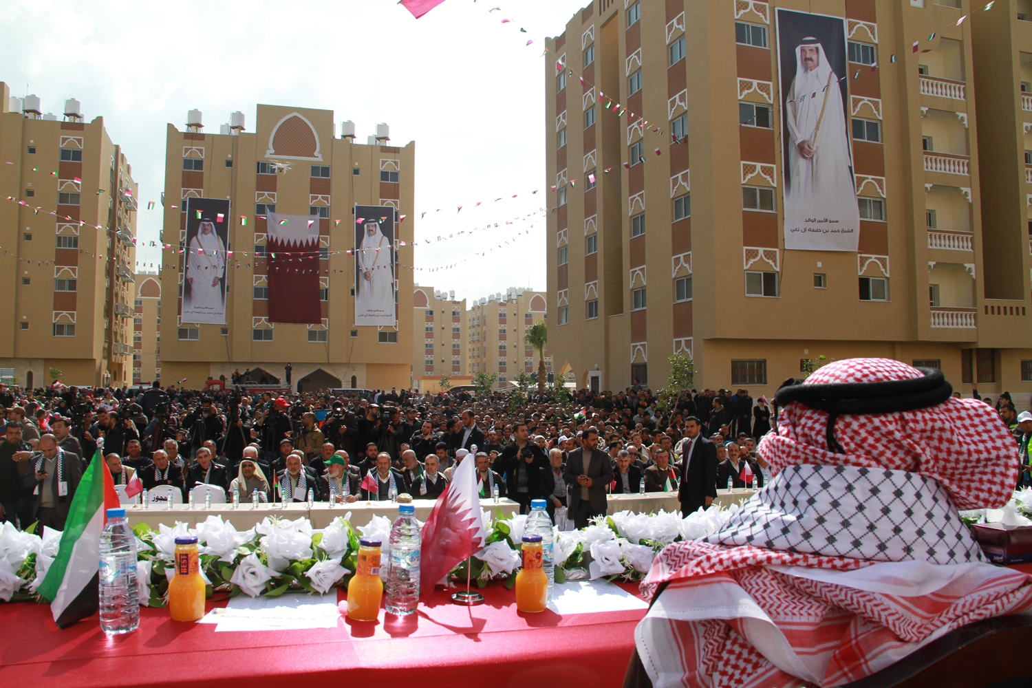 وحضر حفل التسليم سعادة السفير المهندس محمد العمادي، رئيس اللحنة القطرية لإعادة إعمار غزة، ود. إسماعيل هنية، رئيس الوزراء الفلسطيني السابق، ود. مفيد الحساينة وزير الأشغال العامة والإسكان، وأ. خالد الحردان نائب رئيس اللجنة القطرية، ود. يوسف الغريز مستشار رئيس اللجنة، ولفيف من وزراء حكومة التوافق الفلسطينية وشخصيات حكومية وفصائلية، بالإضافة إلى المستفيدين من المرحلة الثانية من مدينة حمد.
