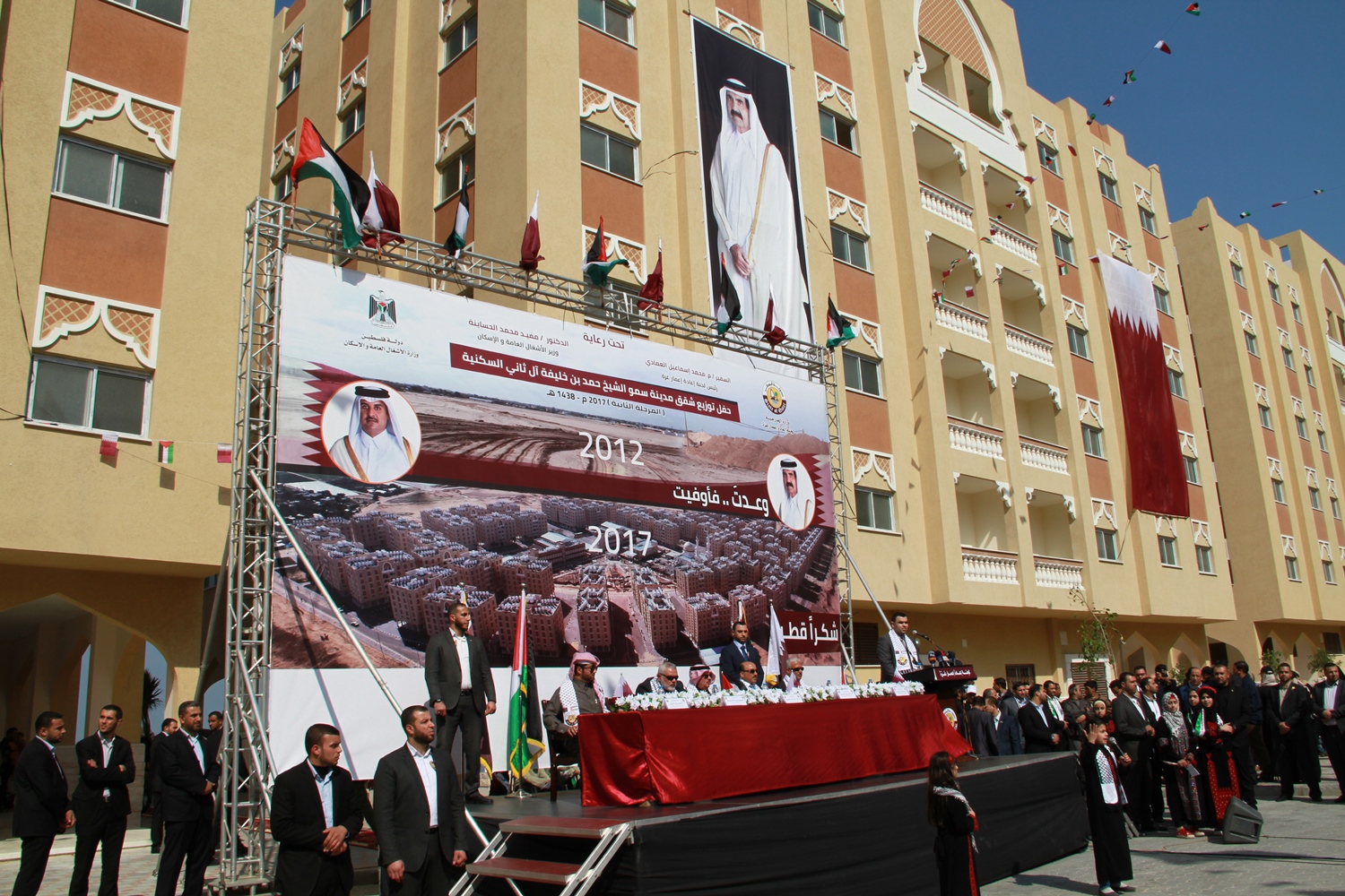 نظمت اللجنة القطرية لإعادة إعمار غزة، بالتعاون مع وزارة الأشغال العامة والإسكان حفلا كبيرا لتسليم شقق المرحلة الثانية من مدينة سمو الشيخ حمد بن خليفة آل ثاني. ظهر اليوم السبت.
