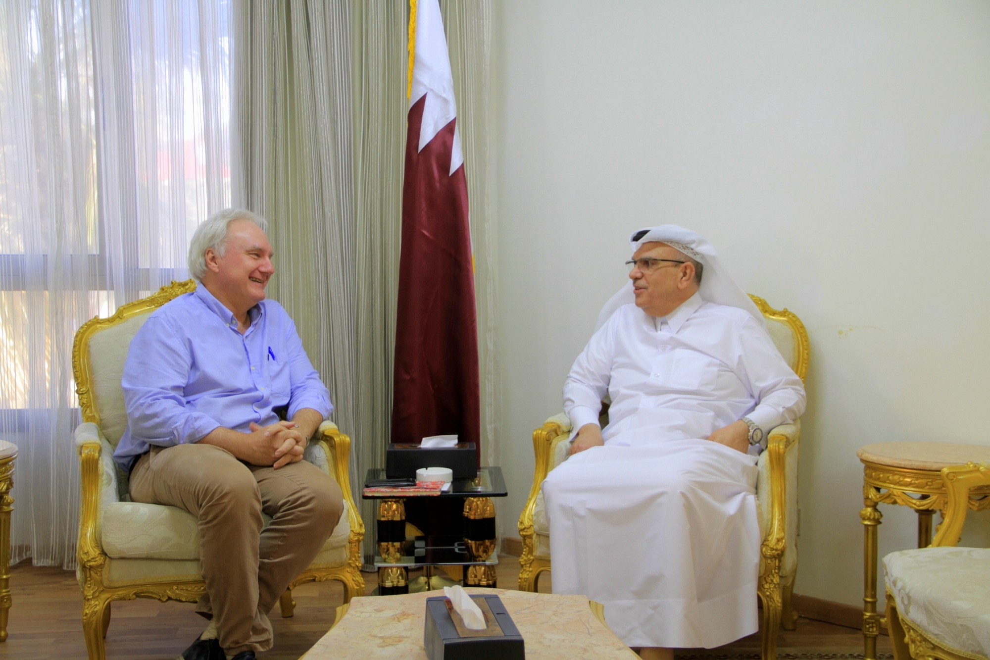 استقبل سعادة السفير محمد العمادي، رئيس اللجنة القطرية لإعادة إعمار غزة، السيد ماتياس شمالي، مدير عمليات وكالة غوث وتشغيل اللاجئين الفلسطينيين "أونروا"، اليوم الأربعاء في مكتبه بغزة.