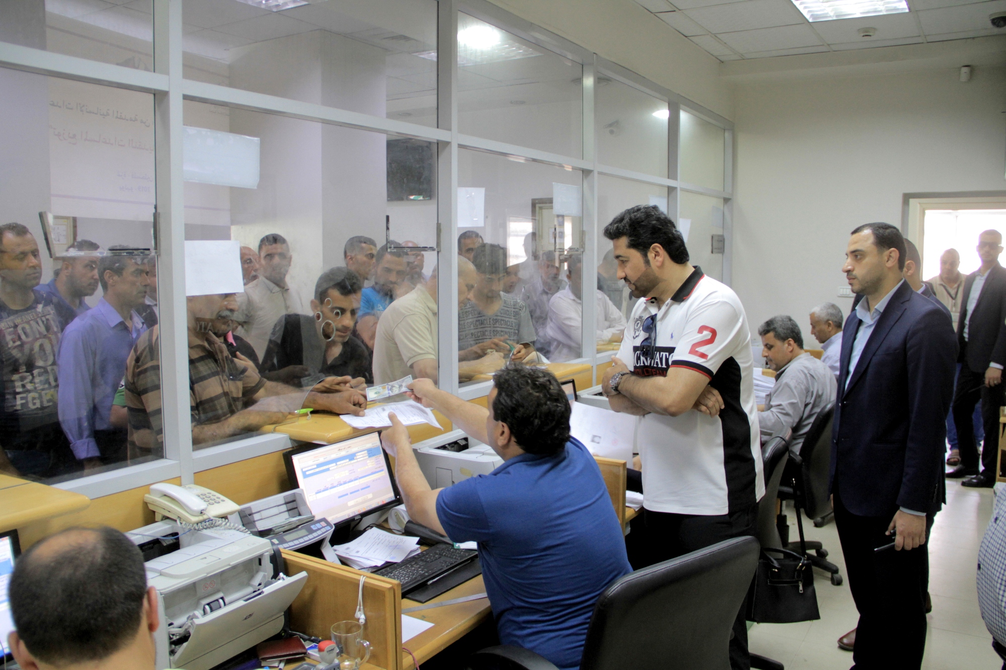 وتفقد الحردان آلية صرف المساعدات النقدية لـ 60 ألف أسرة فقيرة في القطاع، بواقع (100$) لكل أسرة، حيث بدأت عملية الصرف منذ صباح أمس الأحد وستستمر لعدة أيام لحين استلام كافة المستفيدين.