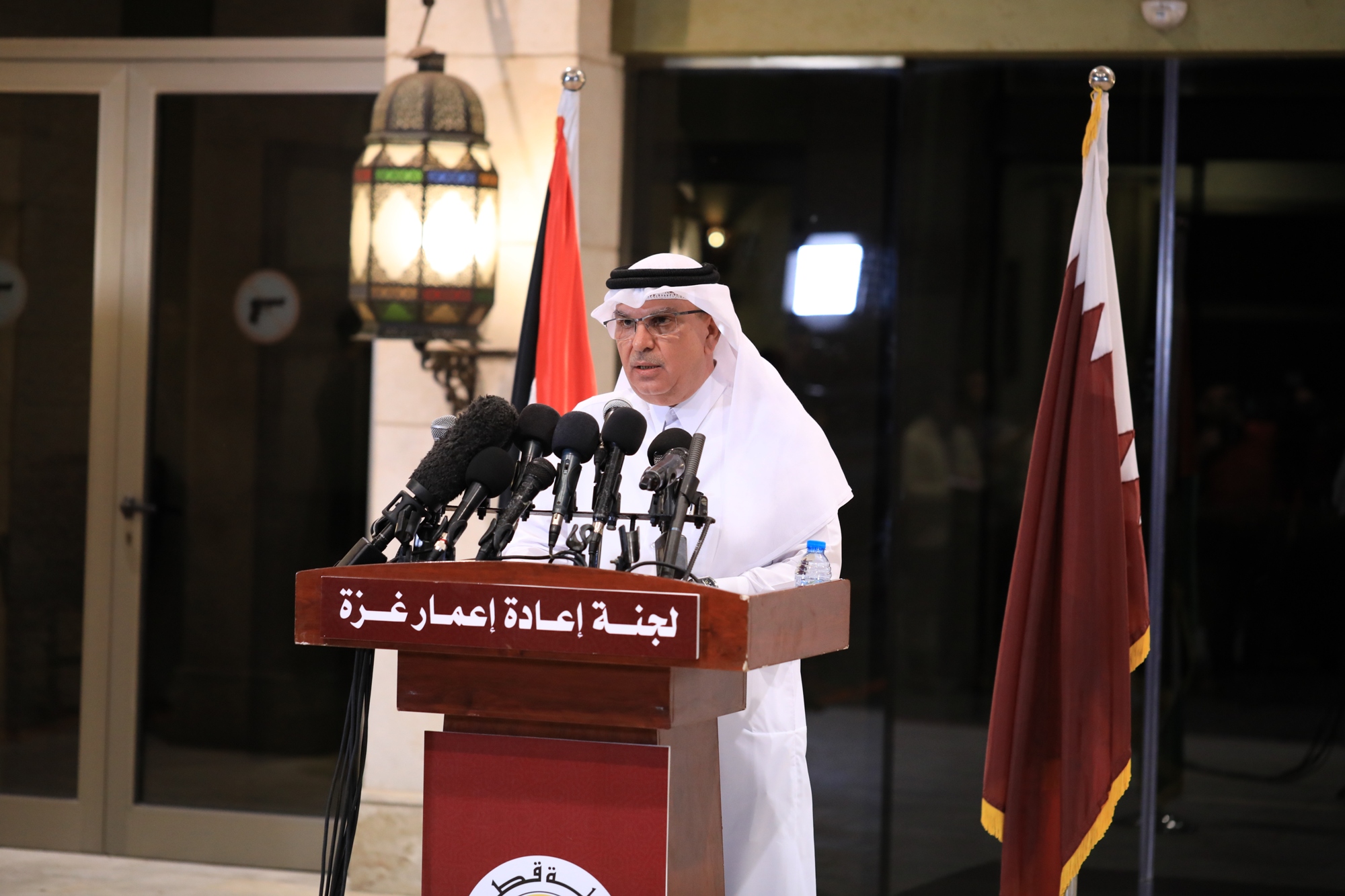 أخيرا فإن دولة قطر تدعو المجتمع الدولي بكافة مكوناته دولاً ومنظماتٍ الى القيام بمسؤولياته الإنسانية والأخلاقية ومساعدة الشعب الفلسطيني الشقيق لتجاوز الأزمة الإنسانية التي يواجهها كما تؤكد دولة قطر التزامها التامّ بالوقوف إلى جانب الشعب الفلسطيني الشقيق للحصول على كافة حقوقه المشروعة.