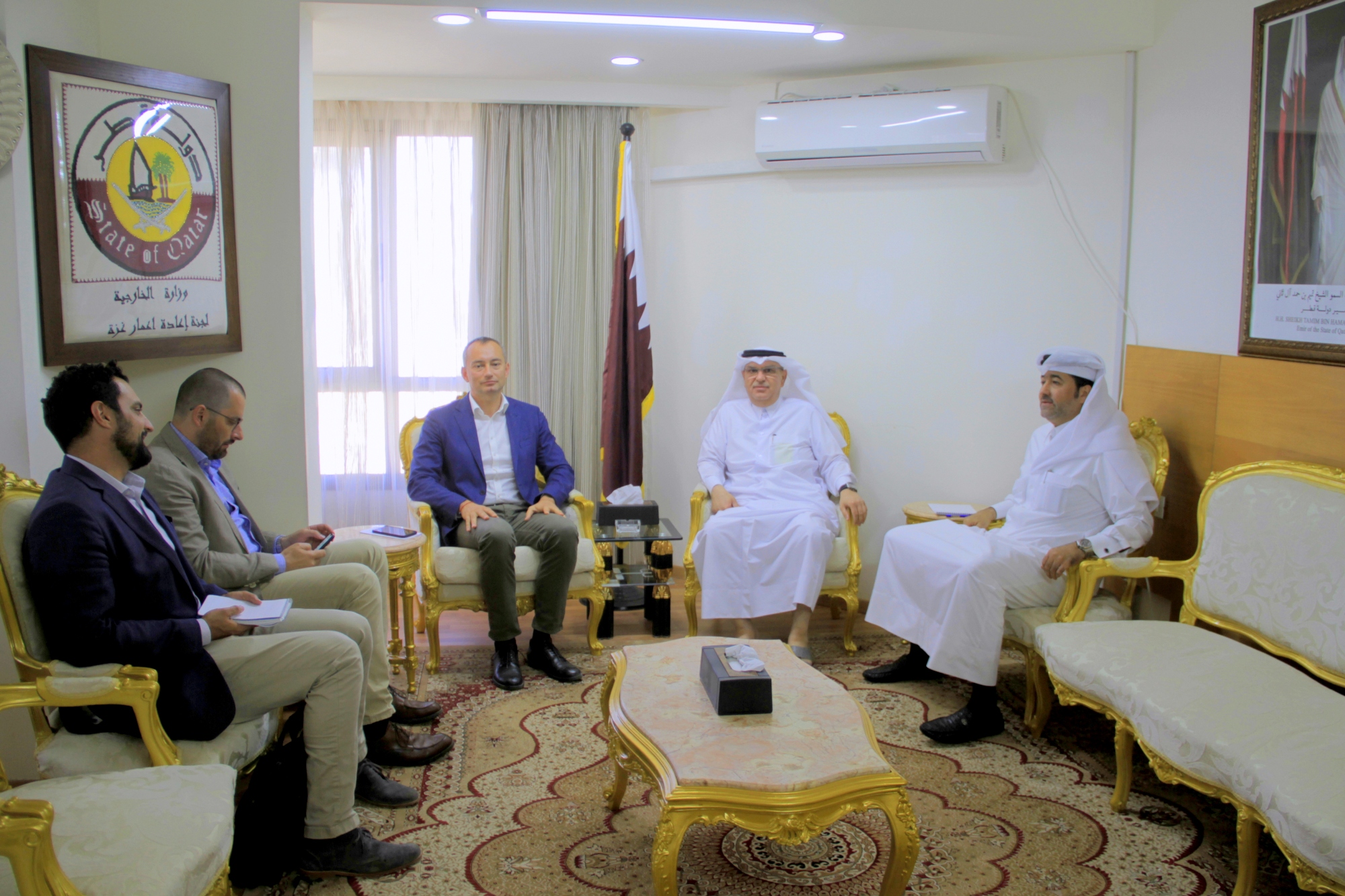استقبل سعادة السفير محمد العمادي رئيس اللجنة القطرية لإعادة إعمار غزة، السيد نيكولاي ملادينوف منسق الأمم المتحدة الخاص لعملية السلام في الشرق الأوسط، في مكتبه بغزة اليوم الاثنين.