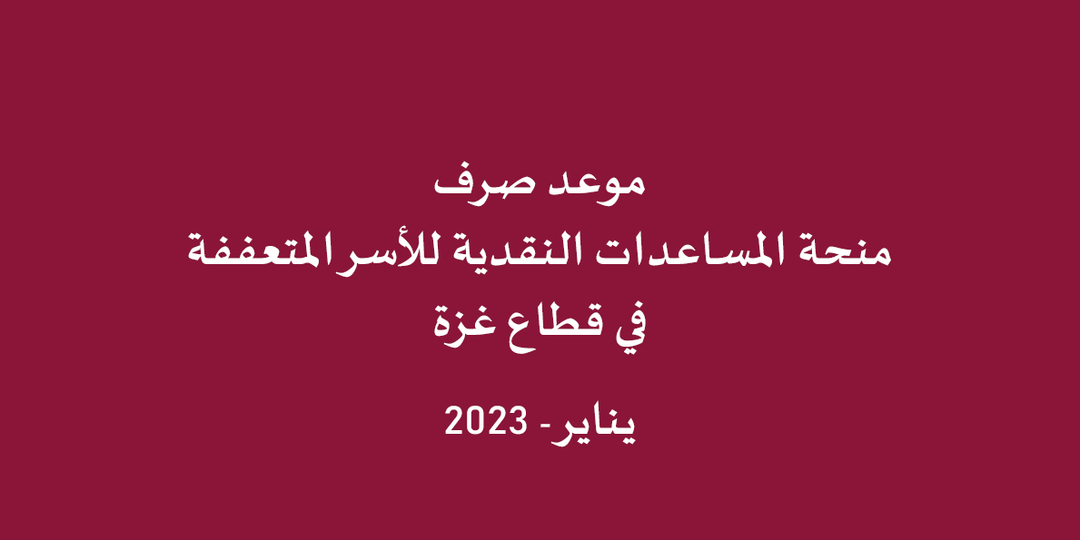 تُعلن اللجنة القطرية لإعادة إعمار غزة، أنها ستبدأ يوم غد /الثلاثاء/ بالتعاون مع صندوق قطر للتنمية، صرف دفعة شهر يناير الجاري من المساعدات النقدية للأسر المتعففة في قطاع غزة.